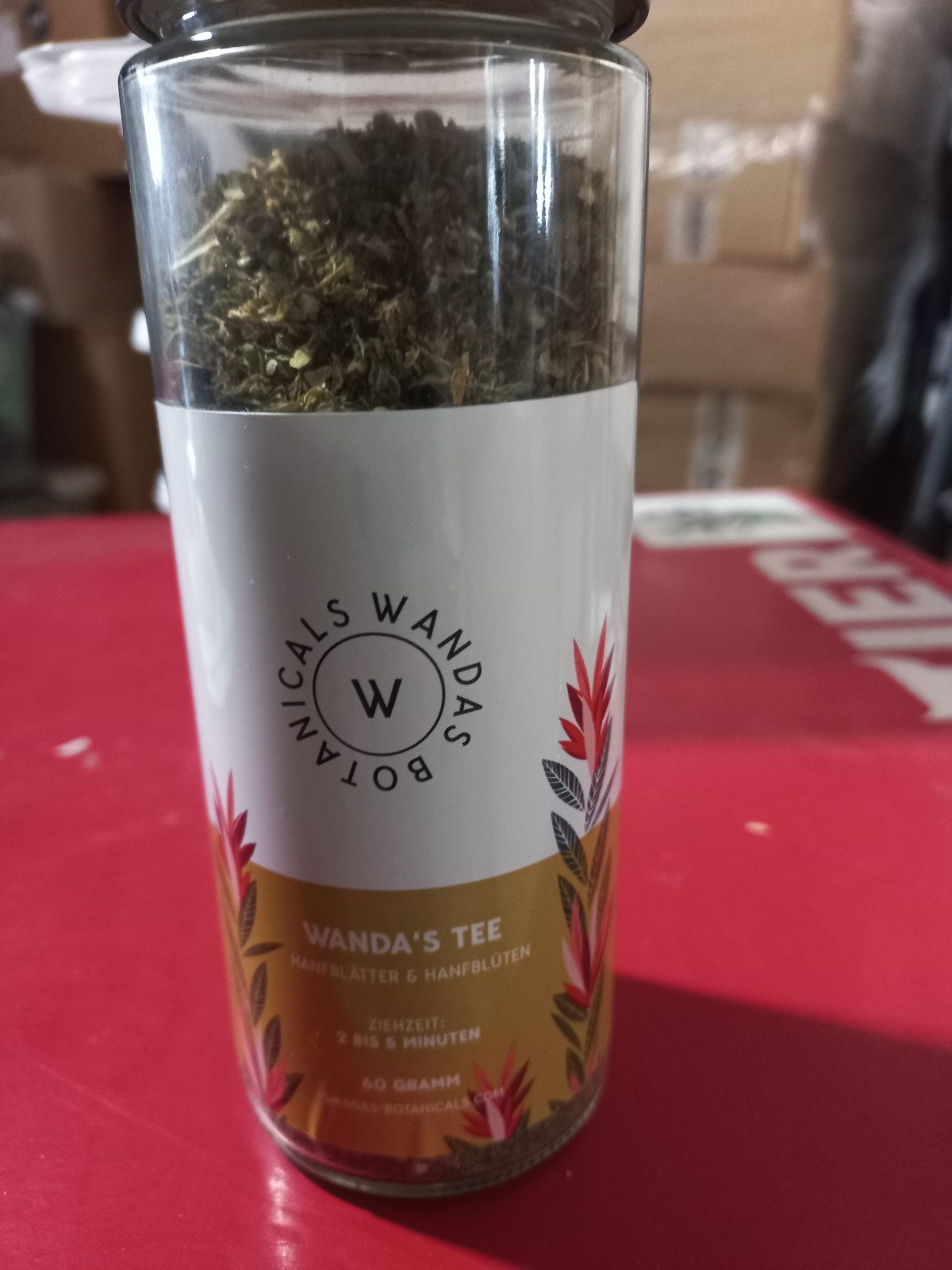 Wanda’s Tee Hanfblaetter & Hanfblueten – 60g im Glas. Ziehzeit 2-5 Minuten. Premium Hanftee von Wanda’s Botanicals.