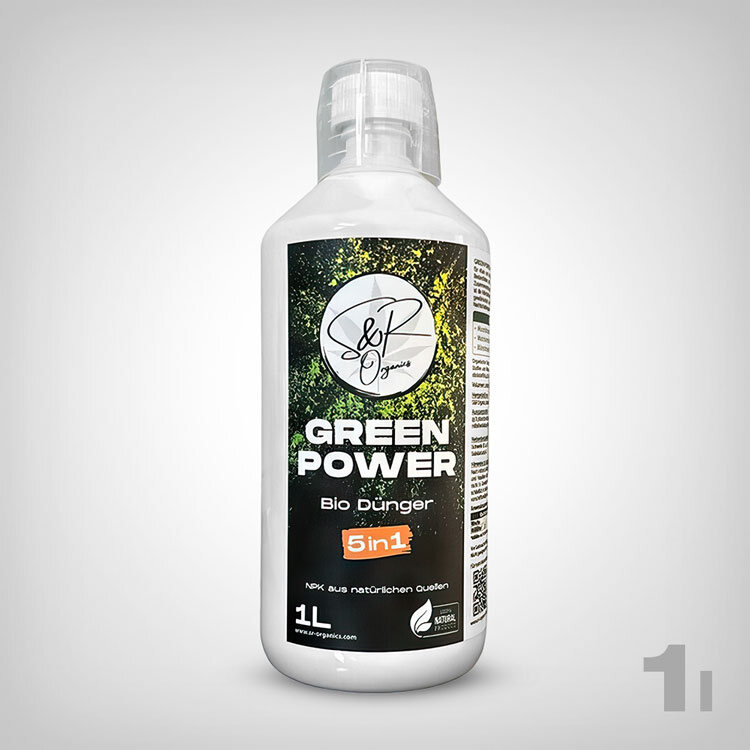 S&R Organics Green Power 5-in-1 Bio-Duenger. Vereint 5 Naehrstoffkomponenten in einer Flasche fuer optimale Pflanzenversorgung. 1 Liter.