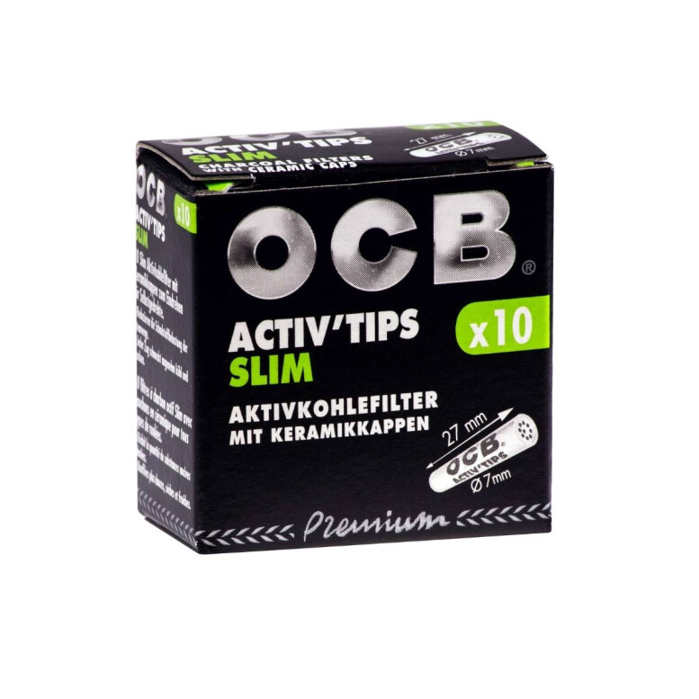 OCB Activ Tips Slim: 10 Aktivkohlefilter mit 7mm Durchmesser fuer kuehlen und trockenen Rauchgenuss.