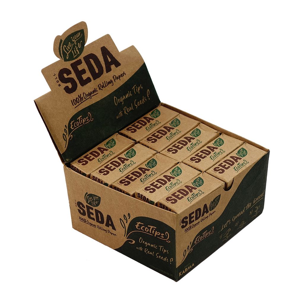 SEDA ECO Tips sind 100% organische Filter-Tips mit eingebetteten Amaranth-Samen. Nach Gebrauch einfach einpflanzen! Vorperforiert, baumfrei, chlorfrei, ungebleicht, kompostierbar, vegan, Fair Trade. 33 Tips pro Booklet, 22 x 56mm.