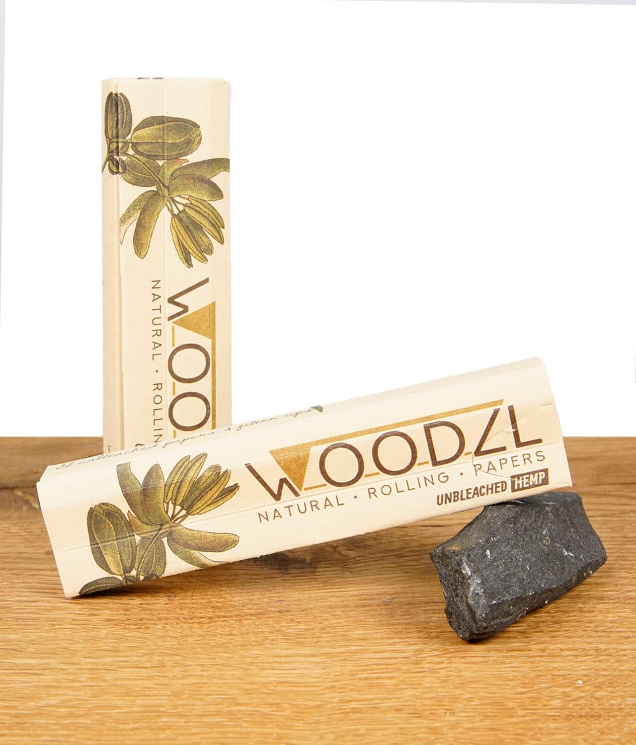 WOODZL Longpapers in King Size Slim aus ungebleichtem Hanfpapier (0,05g duenn). Mit integrierter Drehunterlage, Grinder-Card-Fach und perforierten Filtertips. Verpackung aus recyceltem Karton, plastikfrei.